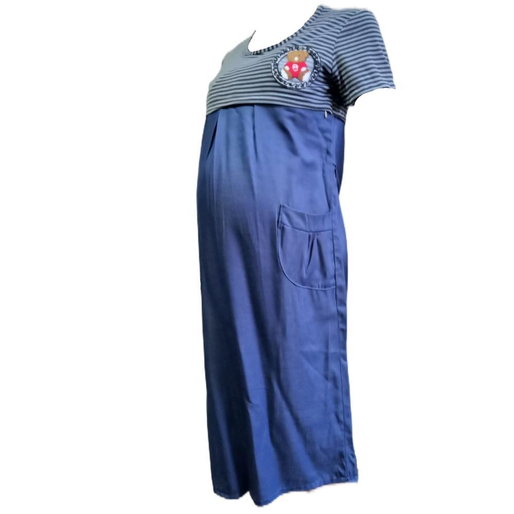 پیراهن شیردهی ملوانی جنس پارچه بالا تنه تریکو و جنس پارچه پایین تنه تنسل دارای بند تنظیم دور شکم و دارای زیپ مخفی جهت مصرف دوران شیردهی تک سایز 38