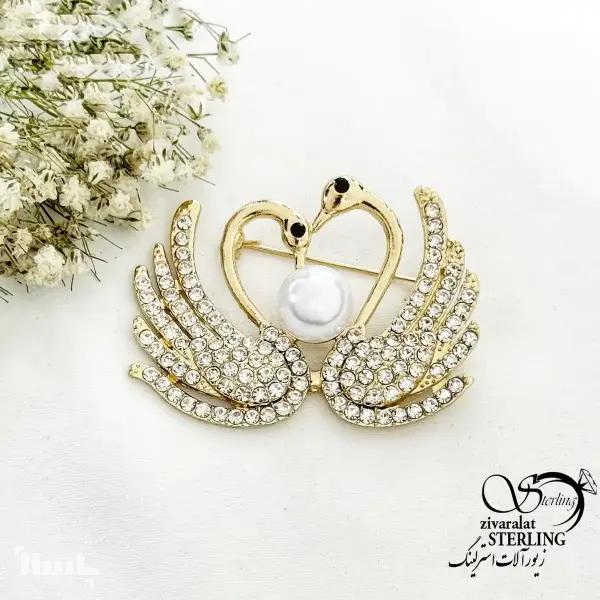 سنجاق سینه (گل سینه) فول نگین طرح قو کد 20124