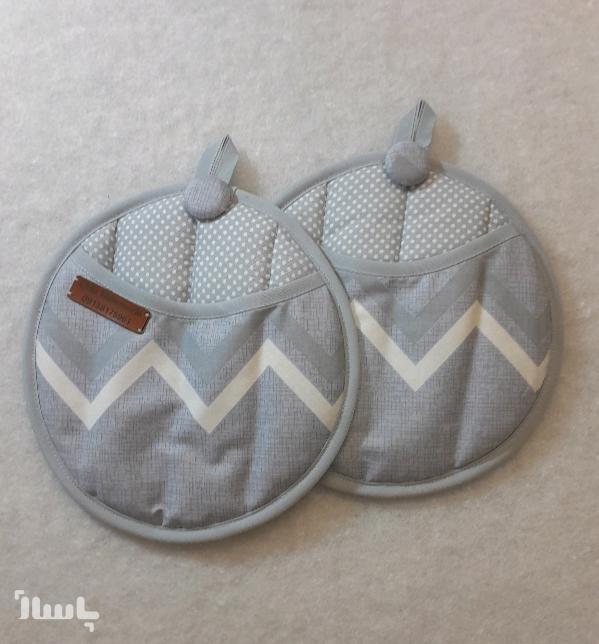 دستگیره های تولید شده در (دنیای آشپزخانه دا ) از پارچه کتان نخ که 100٪ پنبه ای میباشد تهیه شده که به همین دلیل در برابر حرارت مقاوم بوده و حالت خود را از دست نمیدهد و با پشم شیشه فشرده عایق شده است که به دلیل فشردگی و حجم آن مانع رسیدن حرارت به دست می شود و جیبی که روی این دستگیره دوخته شده باعث راحت تر کار کردن با این محصول میشود و در نهایت با نوار اریب کتان تزئین شده که این جنس هم در برابر حرارت مقاوم بوده و زیبایی خاصی به این محصول میدهد.