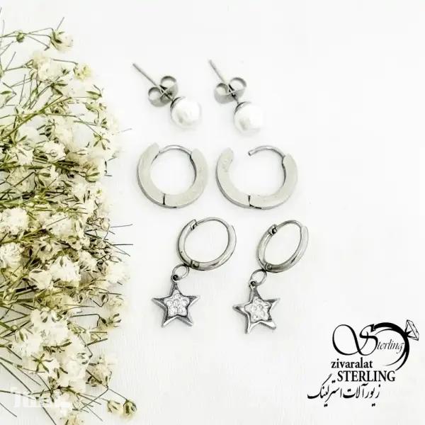 گوشواره پکی مرواریدی برند استیل آویز ستاره کد 19669