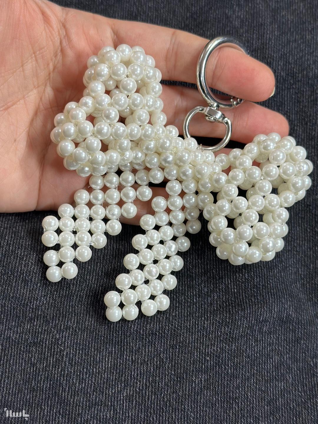 چارم بگ و آویز کلید پاپیون بزرگ مرواریدی