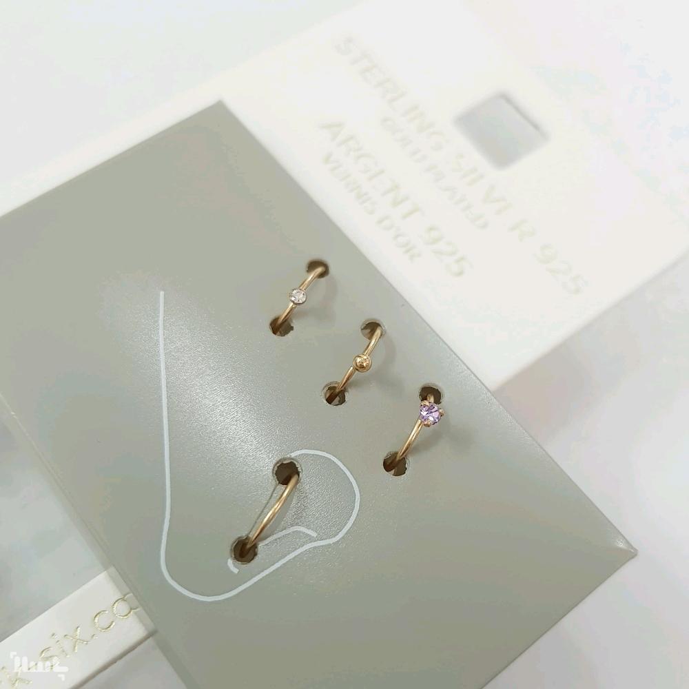 پک چهار عددی پرسینگ بینی حلقه ای نگین دار جنس نقره استرلینگ عیار925 با آبکاری طلا ، تولید کشور تایلند ، شناسنامه دار