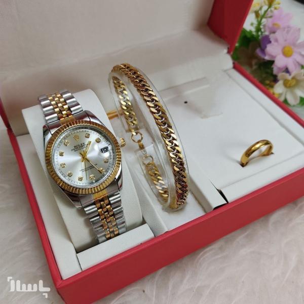 ست ساعت رولکس دستبند و حلقه رولکس زنانه یا مردانه وارداتی از دبی با کیفیت عالی 22913 ارسال رایگان