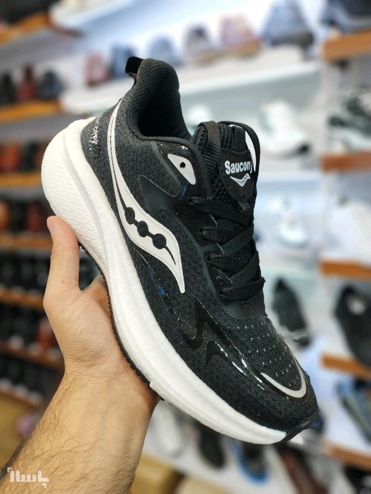 کفش مردانه فوق سبک ساکونی با زیره کربنی کف طبی کف دوخت شده در دو رنگ مشکی و سفید و سایز بندی 41 تا 44