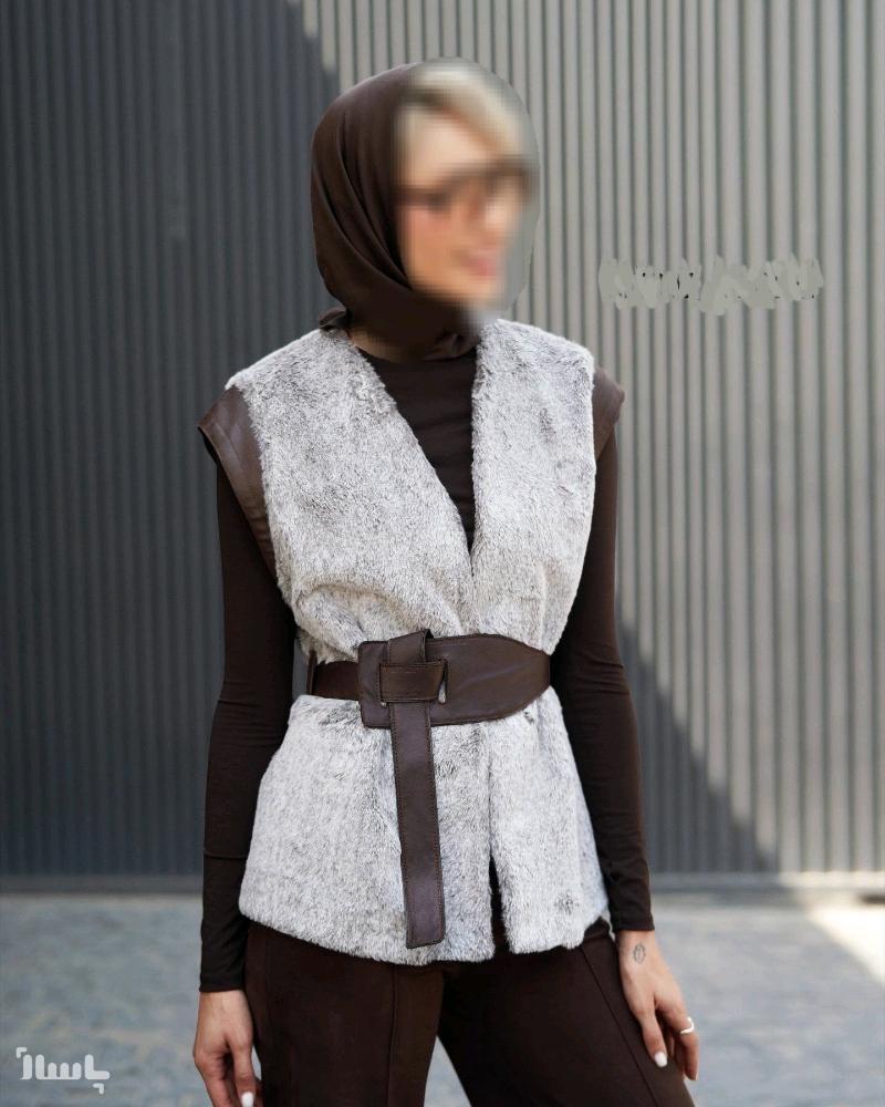 وست زنانه خز آستردار مدل خرجکار چرم ترک