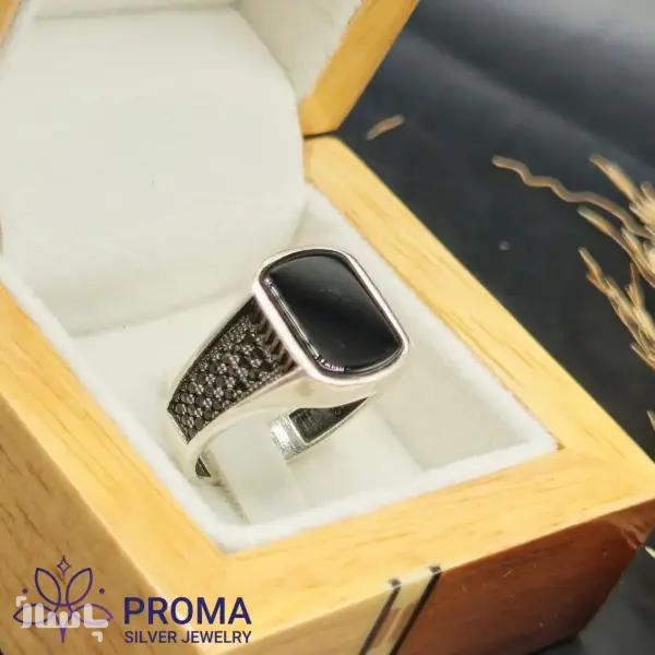 انگشتر نقره مردانه نگین مشکی اسپرت مدل PEM51