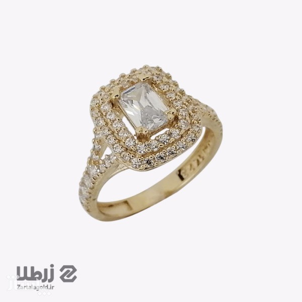 انگشتر تک نگین دو دور نگینی طلا کد R14520