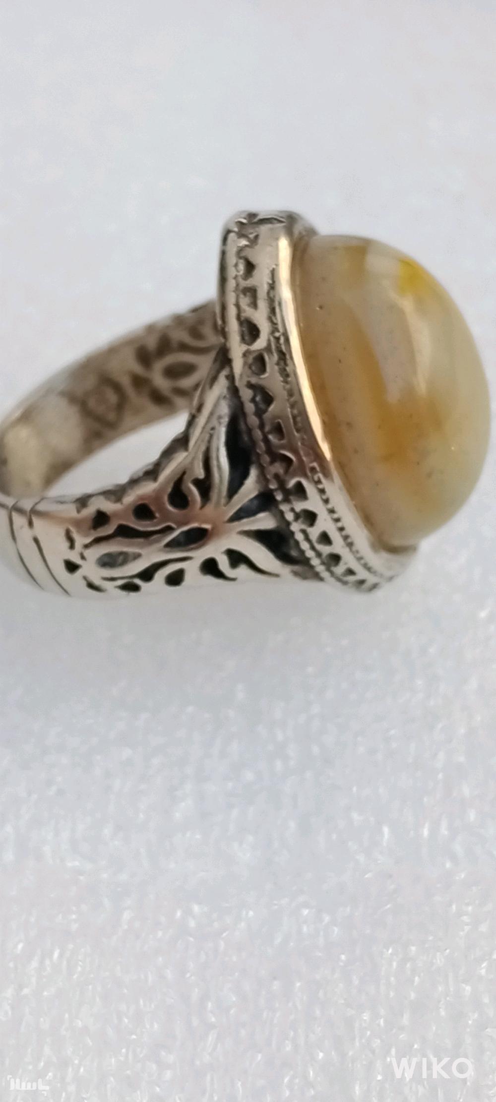 انگشتر عقیق جزع یمانی معدنی طبیعی اصل نقره عیار 84