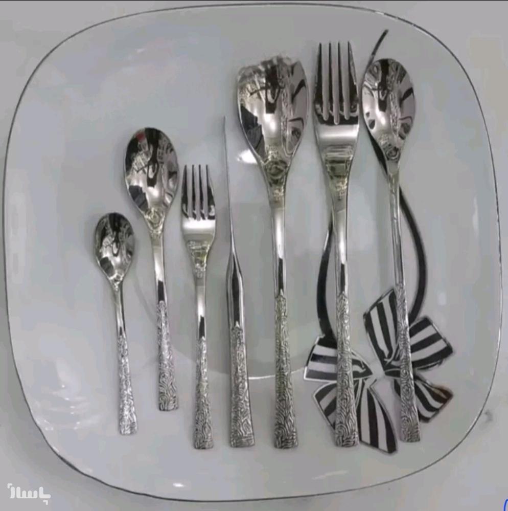 سرویس قاشق چنگال 24 نفره 128 پارچه مدل سلطنتی جی وان نقره ای شیک و خاص