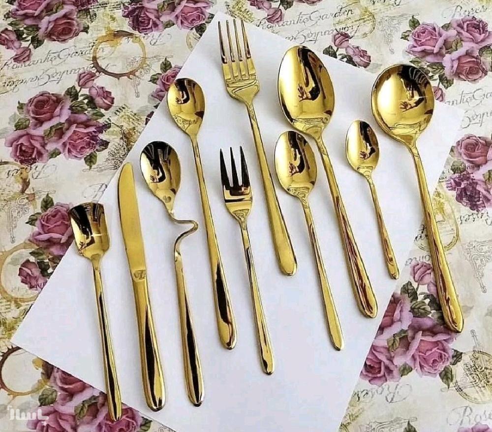 سرویس قاشق و چنگال طلایی 24 نفره 144 پارچه بی چمدان ((پس کرایه))