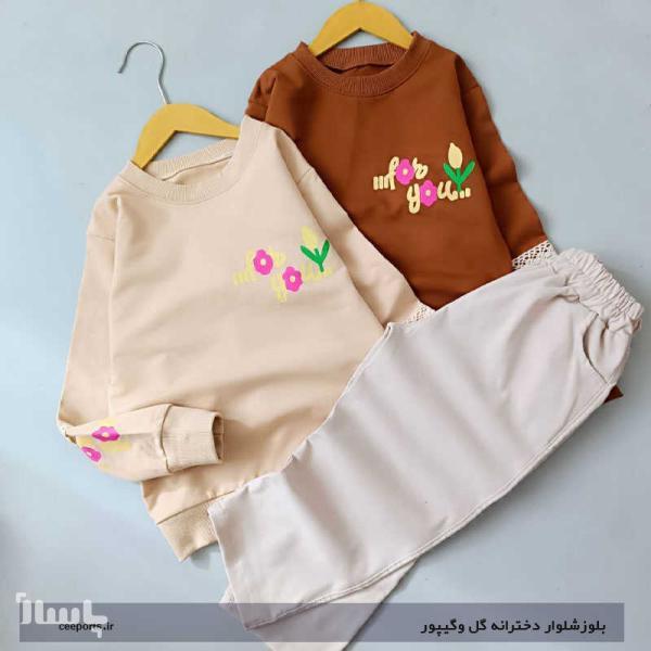 بلوزشلوار دخترانه گل وگیپور مناسب 3 تا 10 سال