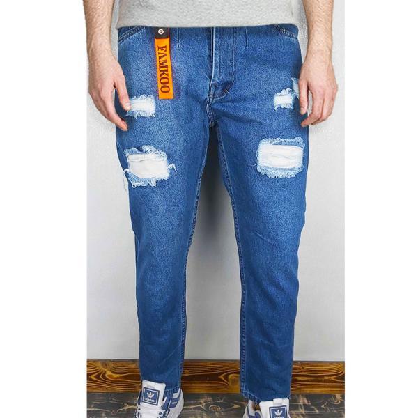 شلوار مام فیت زاپ دار مردانه آبی کد 30028