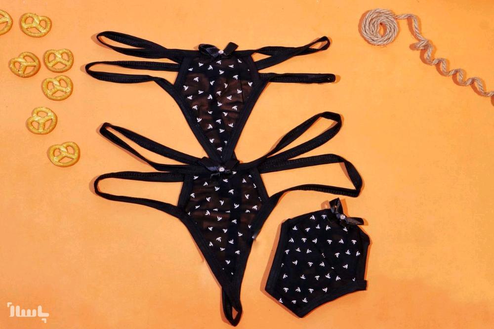 پک سه عددی شورت توری مشکی فانتزی زنانه دو بند قواصی سایز L و XL طراحی
