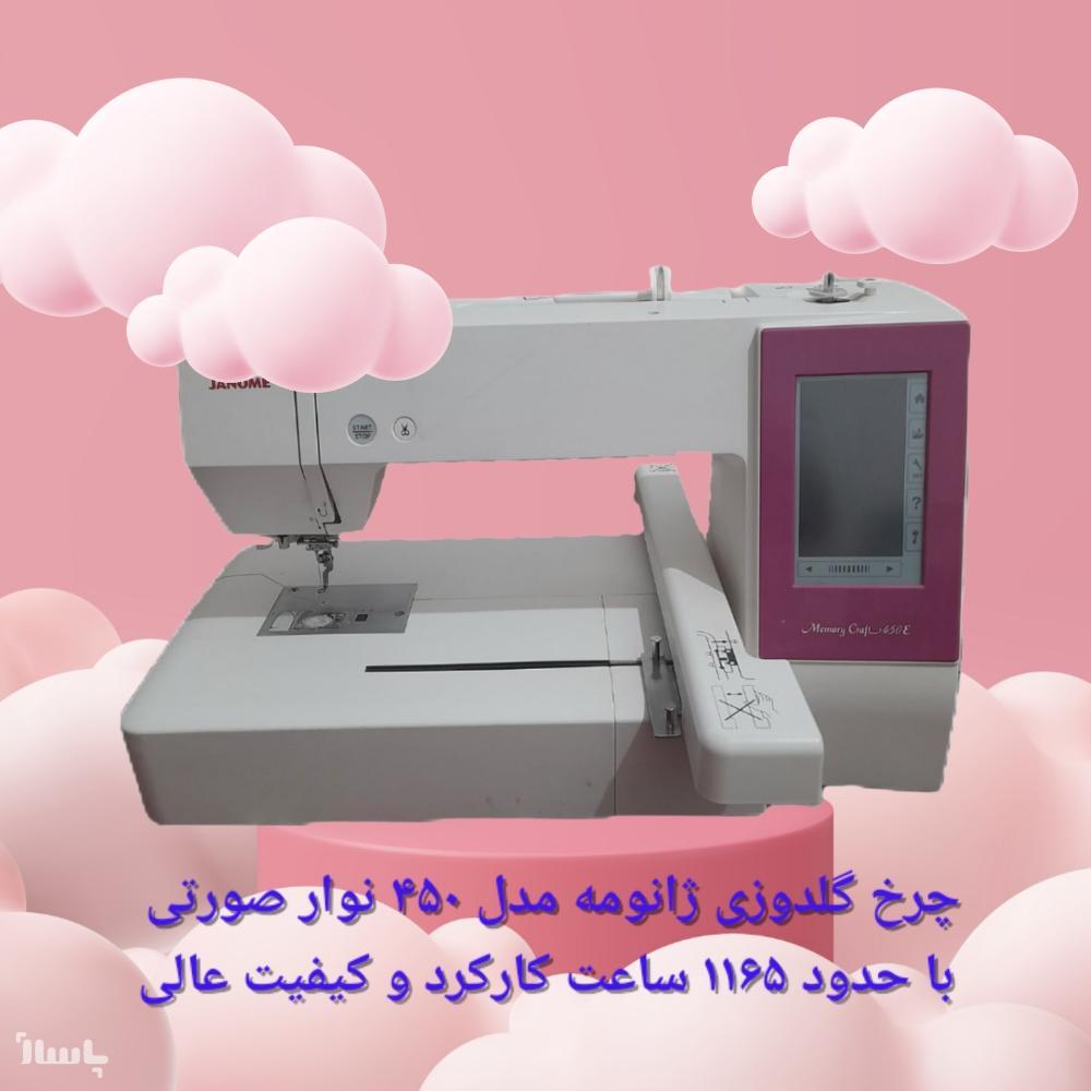 چرخ گلدوزی ژانومه مدل 450 نوار صورتی - کارکرده با حدود 1165 ساعت کارکرد و کیفیت عالی