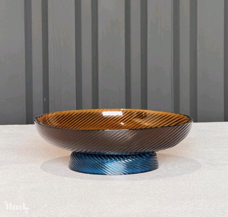 ظرف پذیرایی 2 رنگ شیشه ای دستساز وارداتی پایه کوتاه