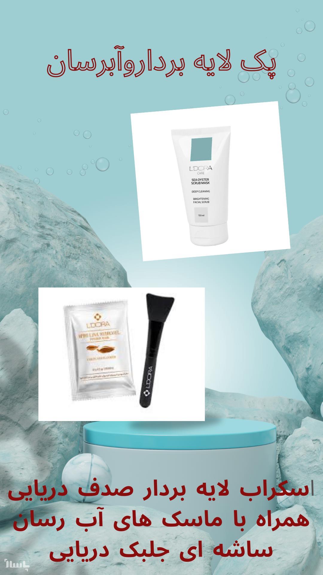 پک لایه بردار وآبرسان صورت شامل اسکراب لایه بردار پوست صورت به همراه ماسک ساشه ای جلبکی لدورا حاوی بذر کتان که خاصیت آبرسانی وسفید کنندگی پوست صورت را دارد به صورت تکی برای دوبار قابل استفاده میباشد.
