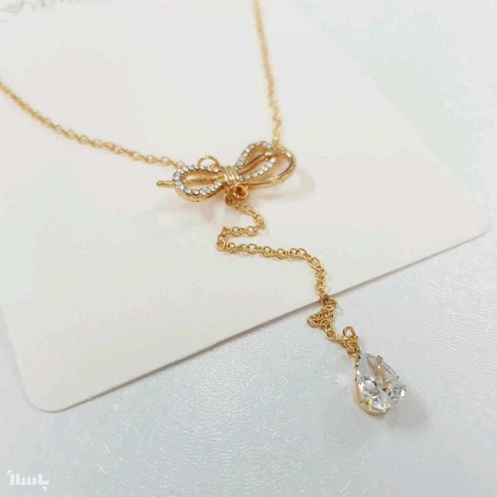 گردنبند مجلسی طلایی آویز دار ، بسیار ظریف و زیبا