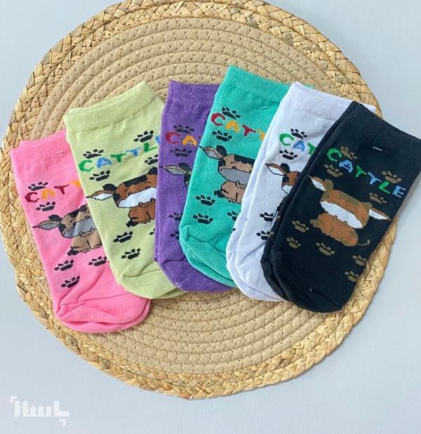 جوراب مچی فانتزی دخترونه طرح گاو ، نخی، تا سایز 40