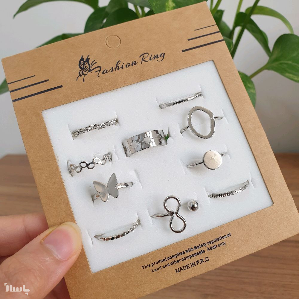 پک انگشتر ده تایی نقره ای