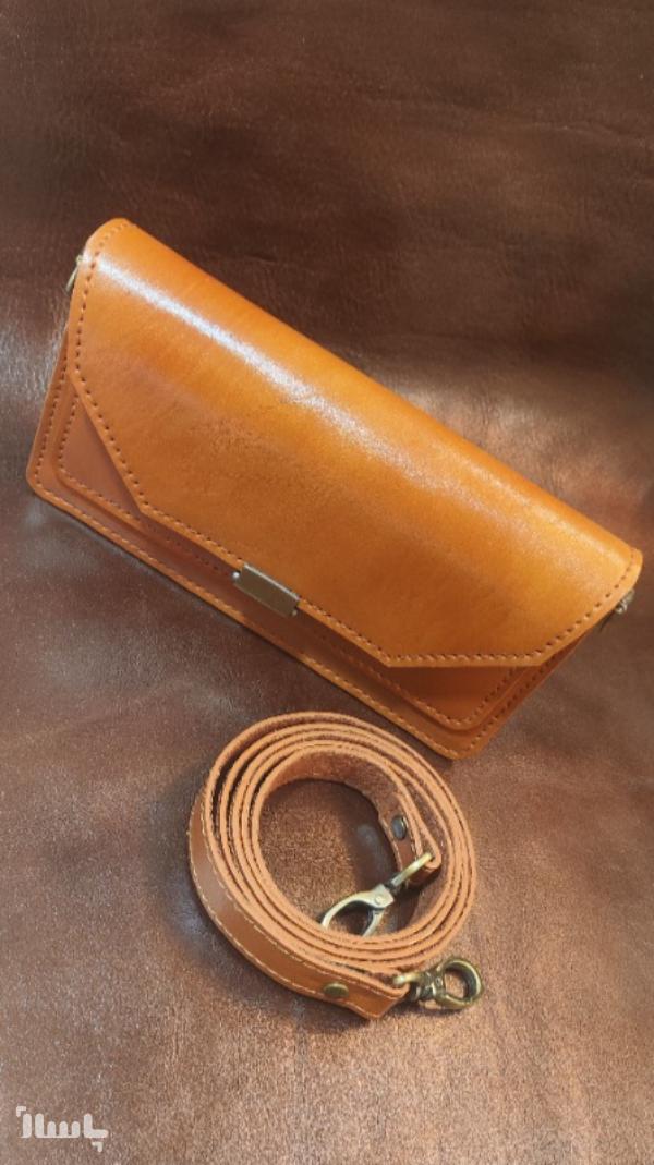 تولید شده از چرم طبیعی گاوی ، کاملا دست دوز ، در ابعاد 20در11، مناسب برای موبایل و کارت و پول نقد وخودکار و دفترچه کوچیک.