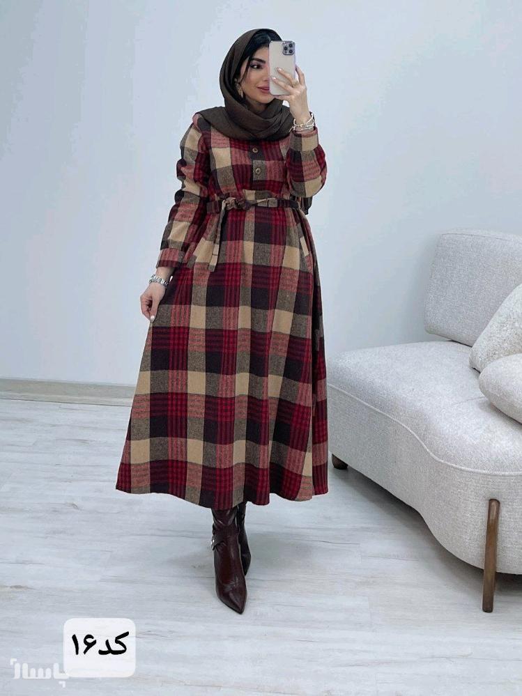 پیراهن کفتان چهارخونه پاییزی موهر پشمی 97358