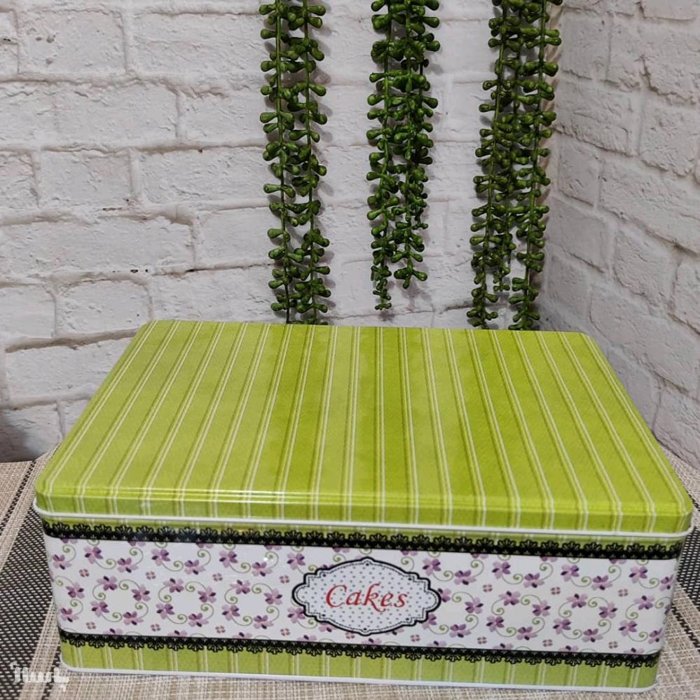 جعبه فلزی وارداتی بزرگ مناسب برای کیک و شیرینی و شکلات و اجیل و تنقلات با کیفیت 28×19 ارتفاع 7/5