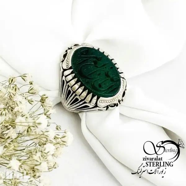 انگشتر عقیق سبز ذکر دار رکاب دستساز نقره925 ایتالیا کد 20205