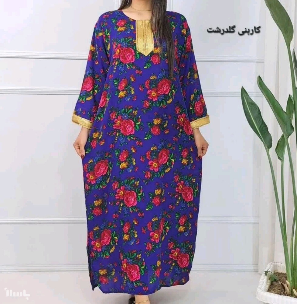 ساحلی نخی بلند گلدار آستین دار طلاکوب طرح کفتان و پایین چاک دار...