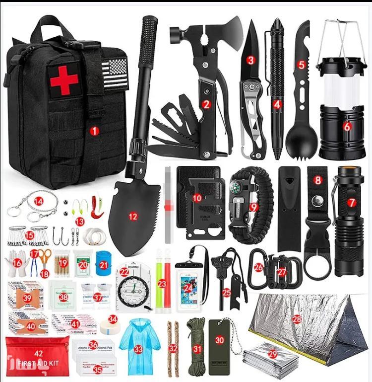 این پک شامل بیل و تبر چندمنظوره، چراغ قوه تاکتیکی ضدآب، چاقو قفلدار، آتشزن، اره برقی، سوت، ابزار چندکاره جیبی و جعبه کمکهای اولیه است.
