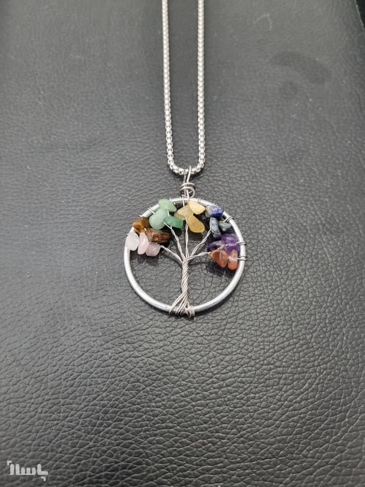 پلاک و زنجیر استیل هفت چاکرا (هفت سنگ، درخت زندگی)