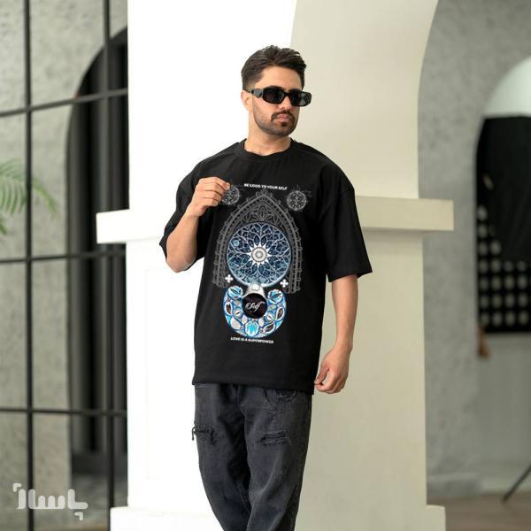 تیشرت self جدید طرح سنتی آریا طرح چاپ با کیفیت و ثابت جنس نخ پنبه کویر 28 استایل قواره دار لش قیمت مناسب
