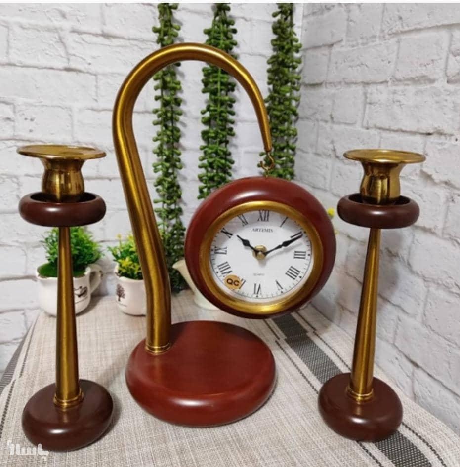 ست ساعت و شمعدان جنس چوب و فلز با کیفیت و شیک مناسب برای دکور