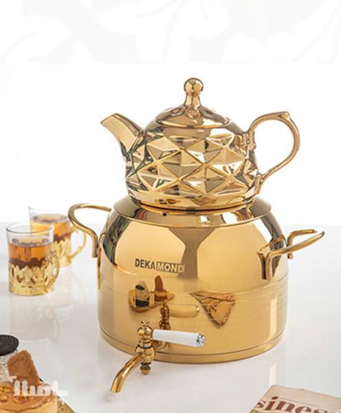 عنوان: آدجابازار – کتری و قوری 5/5 لیتر شیردار طلایی (کد: 6045): لوکس و کاربردی در آشپزخانه شما
