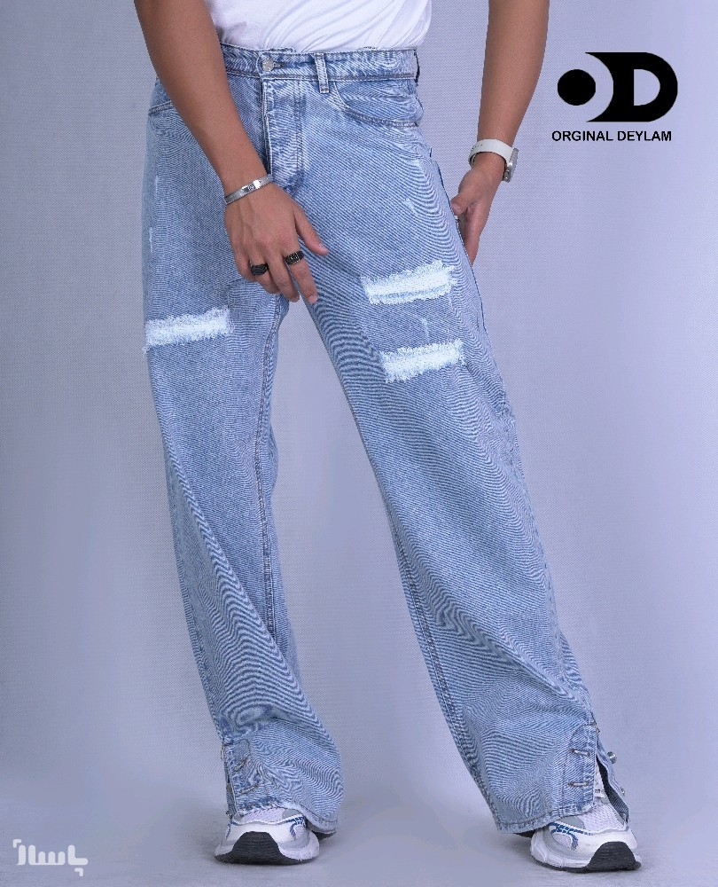شلوار بگ یخی دمپا دکمه زاپ زانفیکس پارچه جین کجراه