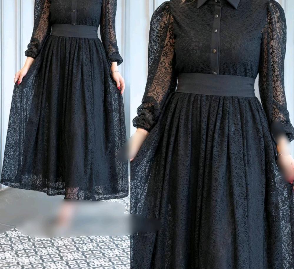 جنس : دانتل و آستر پاناما(قد حدود 135)(کمربند داره)(دکمه ها کاربردی)