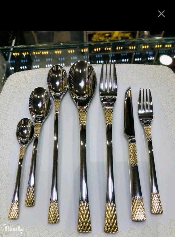 سرویس قاشق و چنگال طلایی 12 نفره59 پارچه نیمه طلایی دهانه اروپایی یون