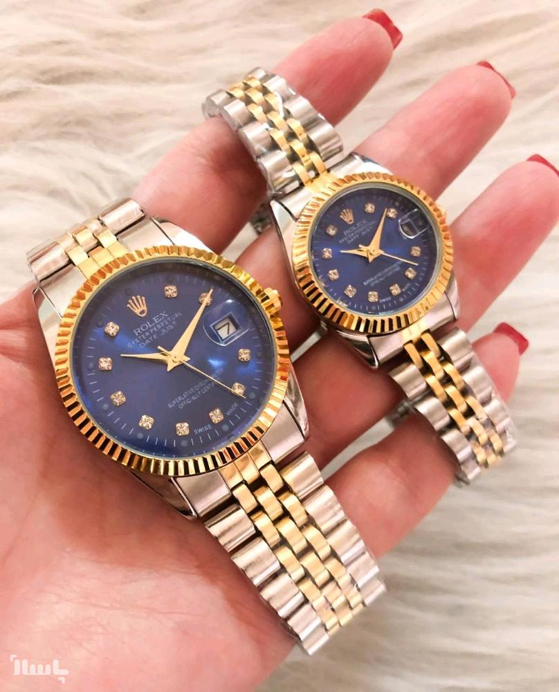ست ساعت زنانه و مردانه رولکس بند دو رنگ صفحه آبی