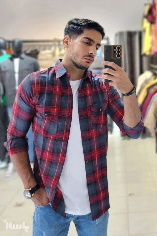 پیراهن چارخونه مردانه آستین بلند نخی اعلا 4 رنگ جذاب سایز M L XL XXL