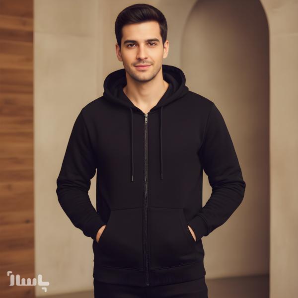 سویشرت دورس کلاهدار زیپی سهنخ پنبه داخل کرک رنگ مشکی – گرم، راحت و باکیفیت