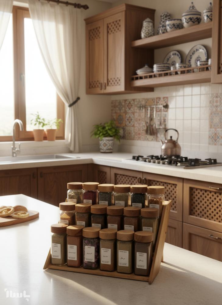 استند چوبی ادویه با شیشههای مککارتی 12 سانتیمتری