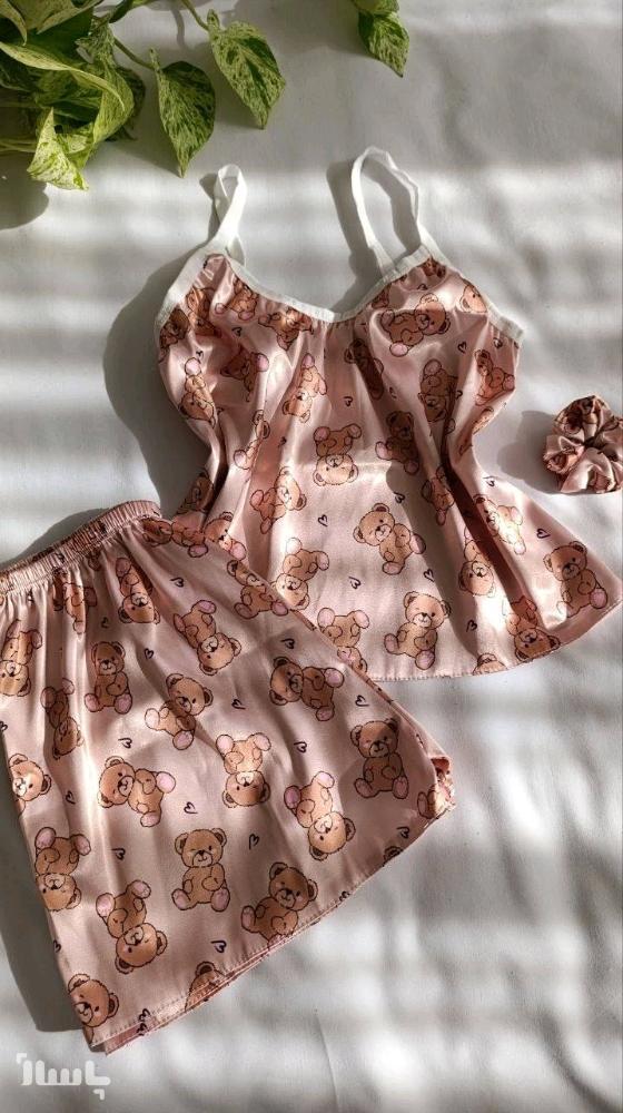 ست سه تیکه لباس خواب ساتن طرح خرسی