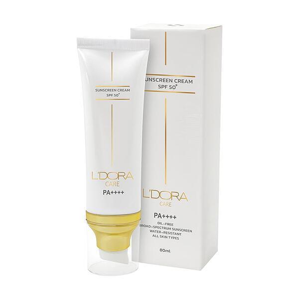 کرم ضد آفتاب +SPF50 بی رنگ مناسب انواع پوست لدورا کر 80 میلی لیتر