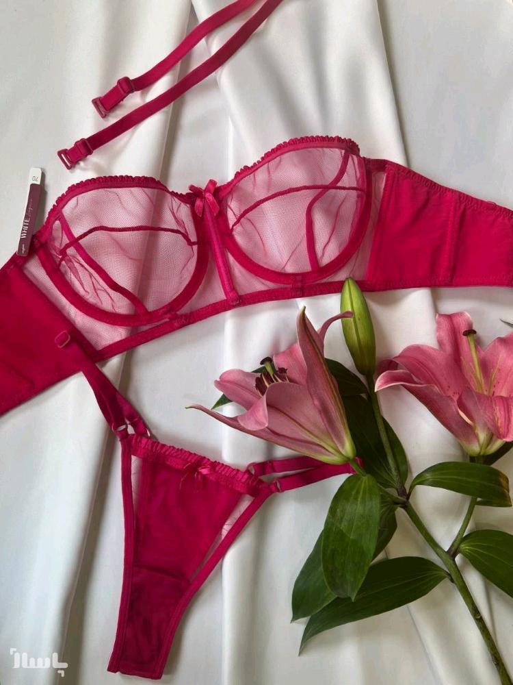 ست 2 تیکه دکلته تور شیشه ای برند وایت لیدی white lady lingerie