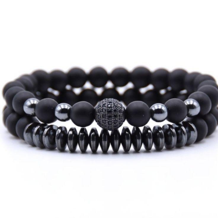 ست دستبند سنگ اونیکس و حدید و گوی سوارسکی
