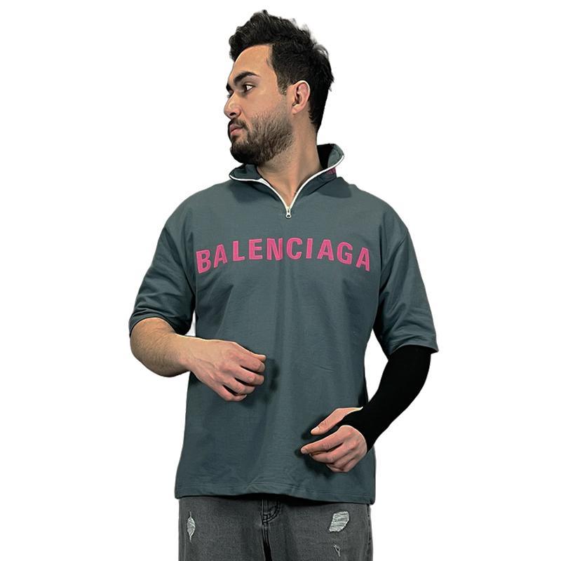 تیشرت آستین کوتاه نیم زیپ مردانه رنگ طوسی