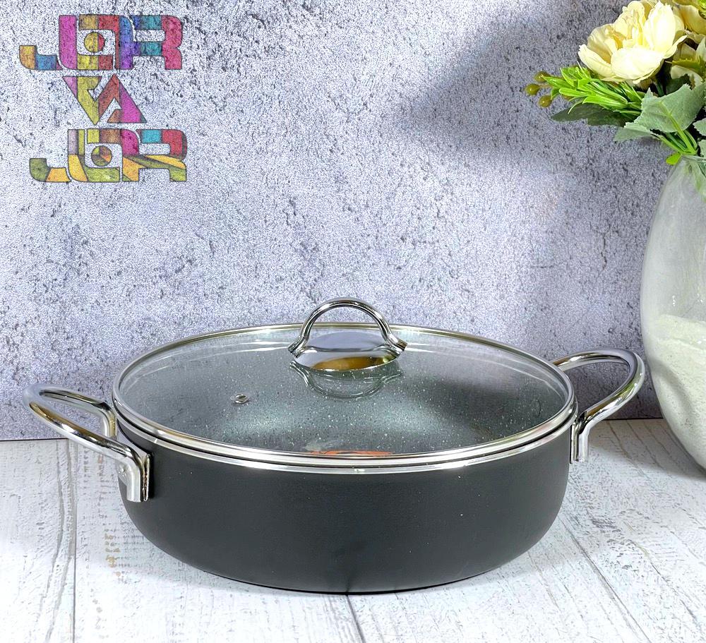 تابه با دو دسته با روکش گرانیت و درب پیرکس در دو سایز برند معتبر جلامبین