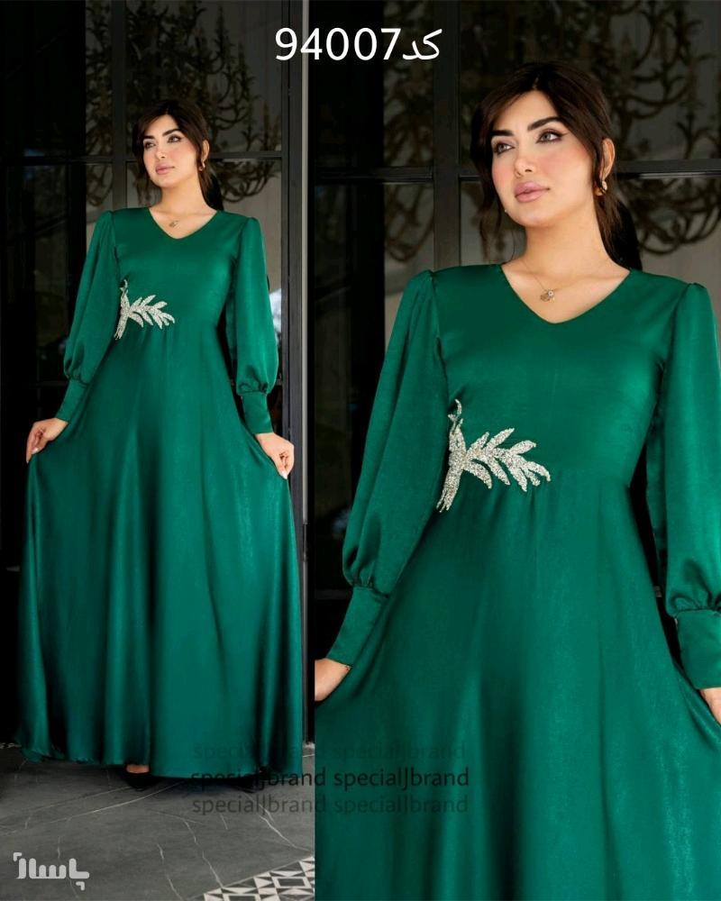 پیراهن مهمانی زنانه ساتن مدل ماکسی مجلسی حدیث پولکی