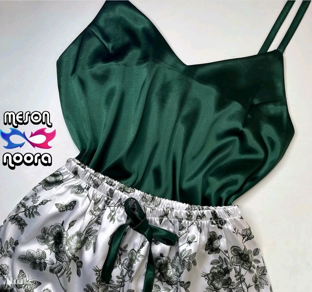 تاپ شلوارک ساتن ابریشم طرح دیور سبز