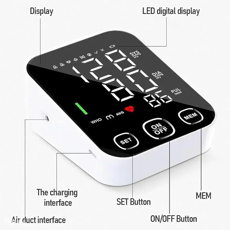 ویژگیها : سخنگو بزبان فارسی ( راهنمایی شروع عملیات و اعلام نتایج دستگاه و نیز وضعیت و تفسیر نتیجه) امکان ذخیره تمام نتایج در کارت حافظه خارجی صفحه نمایش 3 رنگ با نور صفحه استفاده 2 کاربر همزمان شناسایی ، هشدار و توقف اتوماتیک عملیات در صورت وجود اختلال در نتیجه نمایش وضعیت نتیجه فشارخون با 3 رنگ صفحه ( قرمز :بالا ، سبز : طبیعی ، نارنجی : کمی بالا ) مجهز به سنسورهای حساس حرکتی سنجش ضربان قلب انرژی :برق شهر و باتری قابلیت اتصال آداپتور دارای صفحه نمایش پلاسما اندازه گیری فشار خون به کیلوپاسکال و میلی متر جیوه دارای حافظه با قدرت ذخیره سازی 99 فشار خون اندازه گیری شده دارای تقویم و ساعت هشدار دهنده ی ضعیف بودن باتری دارای قابلیت خاموش شدن خودکار، به طوری که پس از 1 دقیقه که استفاده نشود، اتوماتیک خاموش می شود. قابلیت اندازه گیری ضربان قلب هشدار به هنگام کامل شدن فرایند اندازه گیری هشدار خطا