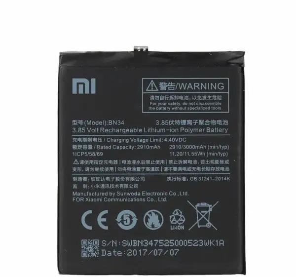 باتری گوشی شیائومی Redmi 5A مدل BN34 محصولی از نوع یون لیتیم بوده و دارای ظرفیتی برابر با 3000 میلی آمپر ساعت می باشد؛